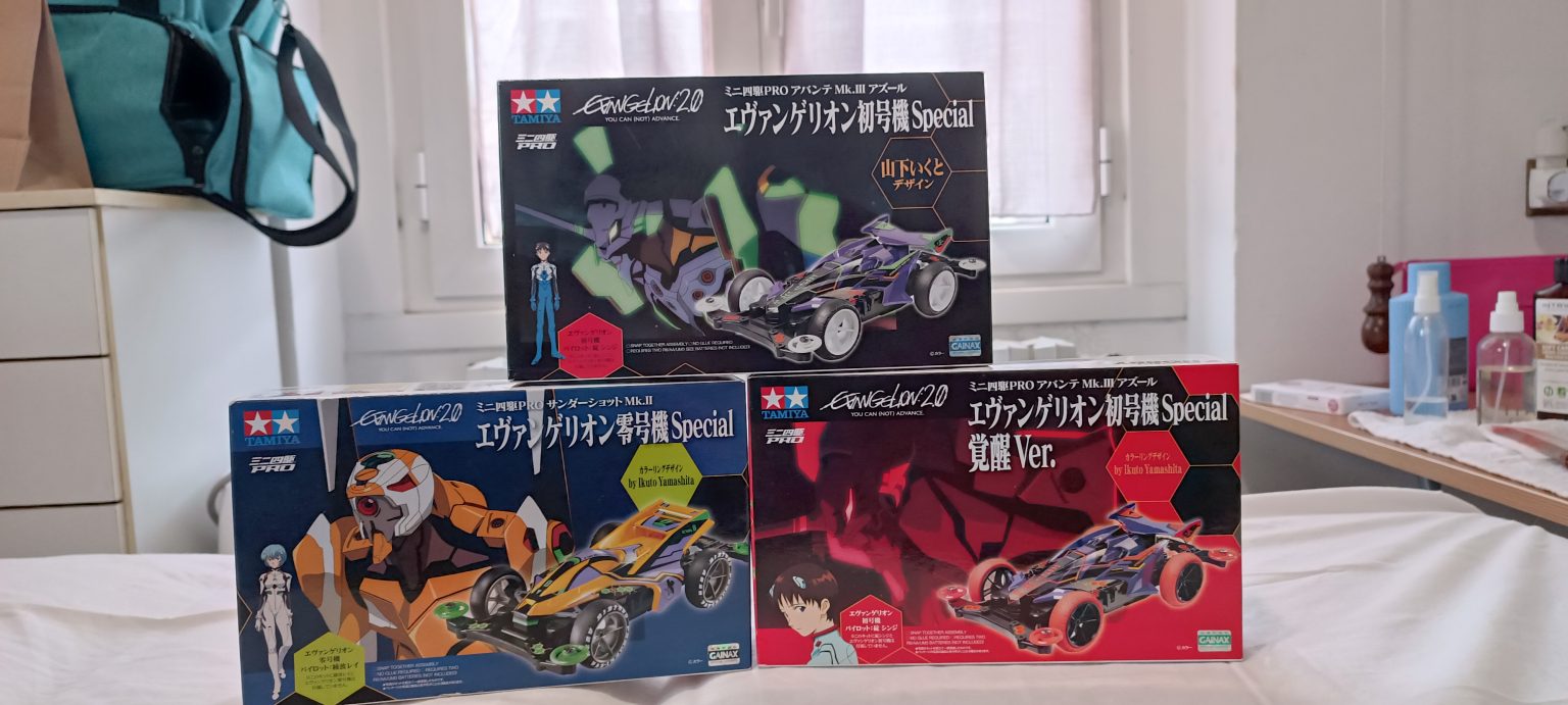 – serie Evangelion comprensivo di kit extra tematizzato all’interno (1 set cerchi e gomme aggiuntivo), venduti esclusivamente in Giappone per il rilancio di questa serie, con l’uscita si un kit all’anno 2009/2010/2011, Tamiya.